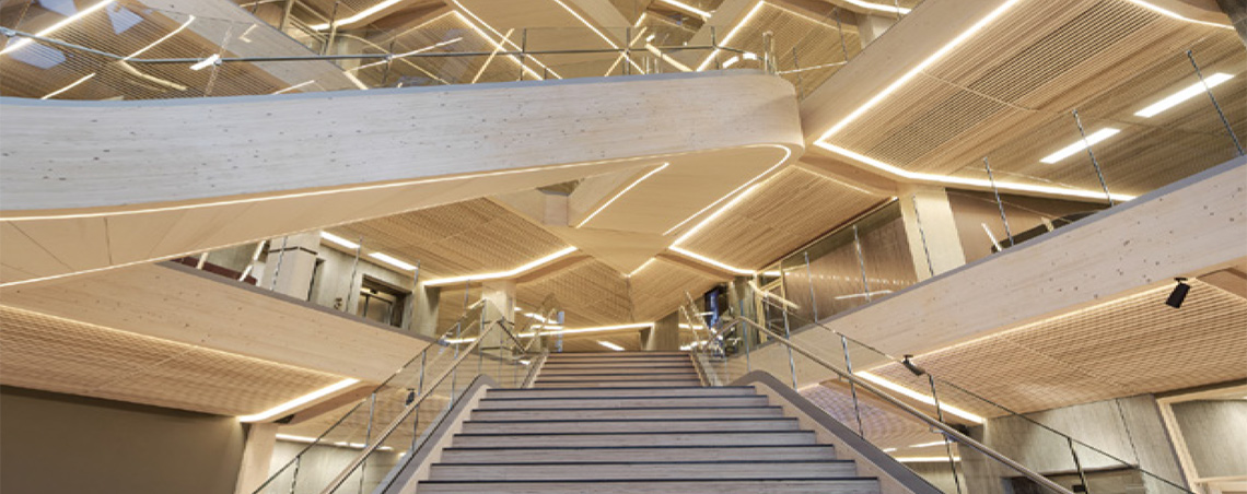 Det här var faktorer som den norska banken SpareBank 1 SR-Bank tog fasta på när de valde att bygga sitt nya huvudkontor i Stavanger. Den framtidsorienterade träbyggnaden stod klar i november förra året och är Europas största kontorshus i trä.