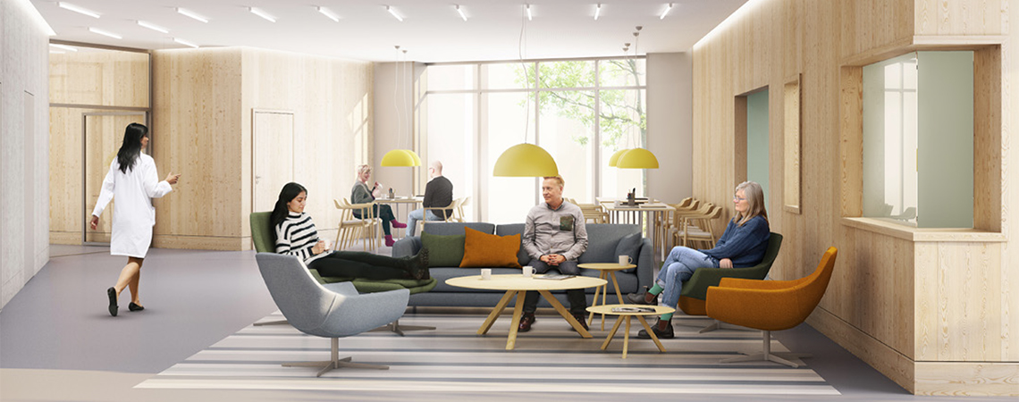 Forskning visar att vårdlokaler som designats med omsorg har en påverkan på hur vi mår och upplever vården. Det kan vara val av möbler, tillgång till fina utblickar, men också val av interiöra material.