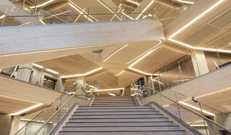 Det här var faktorer som den norska banken SpareBank 1 SR-Bank tog fasta på när de valde att bygga sitt nya huvudkontor i Stavanger. Den framtidsorienterade träbyggnaden stod klar i november förra året och är Europas största kontorshus i trä.